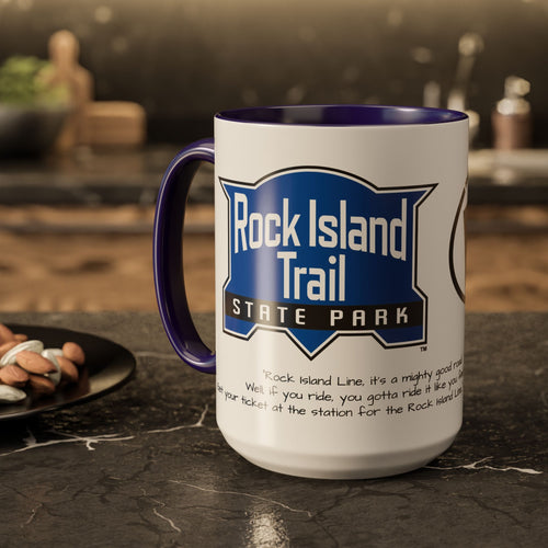 Coffee Mug - Rock Island Trail State Park Colorful Missouri Map for Cyclists & Trail Lovers 15oz