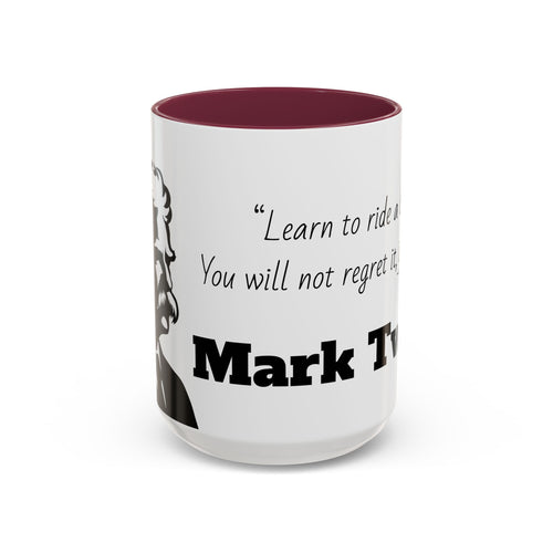 Mark Twain Bicycling Quote - Colorful Mug, Ceramic Cup, Inspirational Quote For Cyclists, Coffee Cups, Literature, Mark Twain, Nature Lover